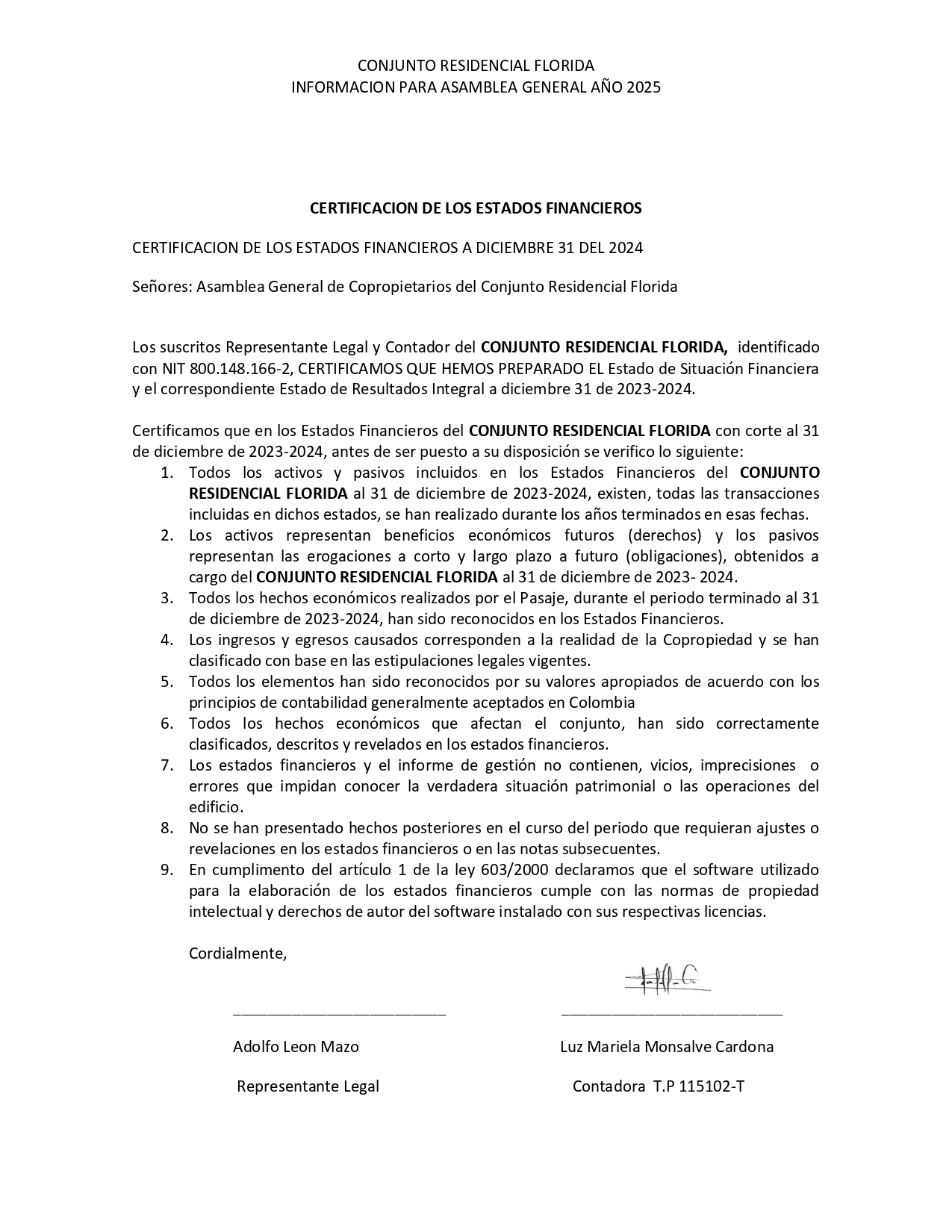 | CONJUNTO RESIDENCIAL FLORIDA | ||||||||||